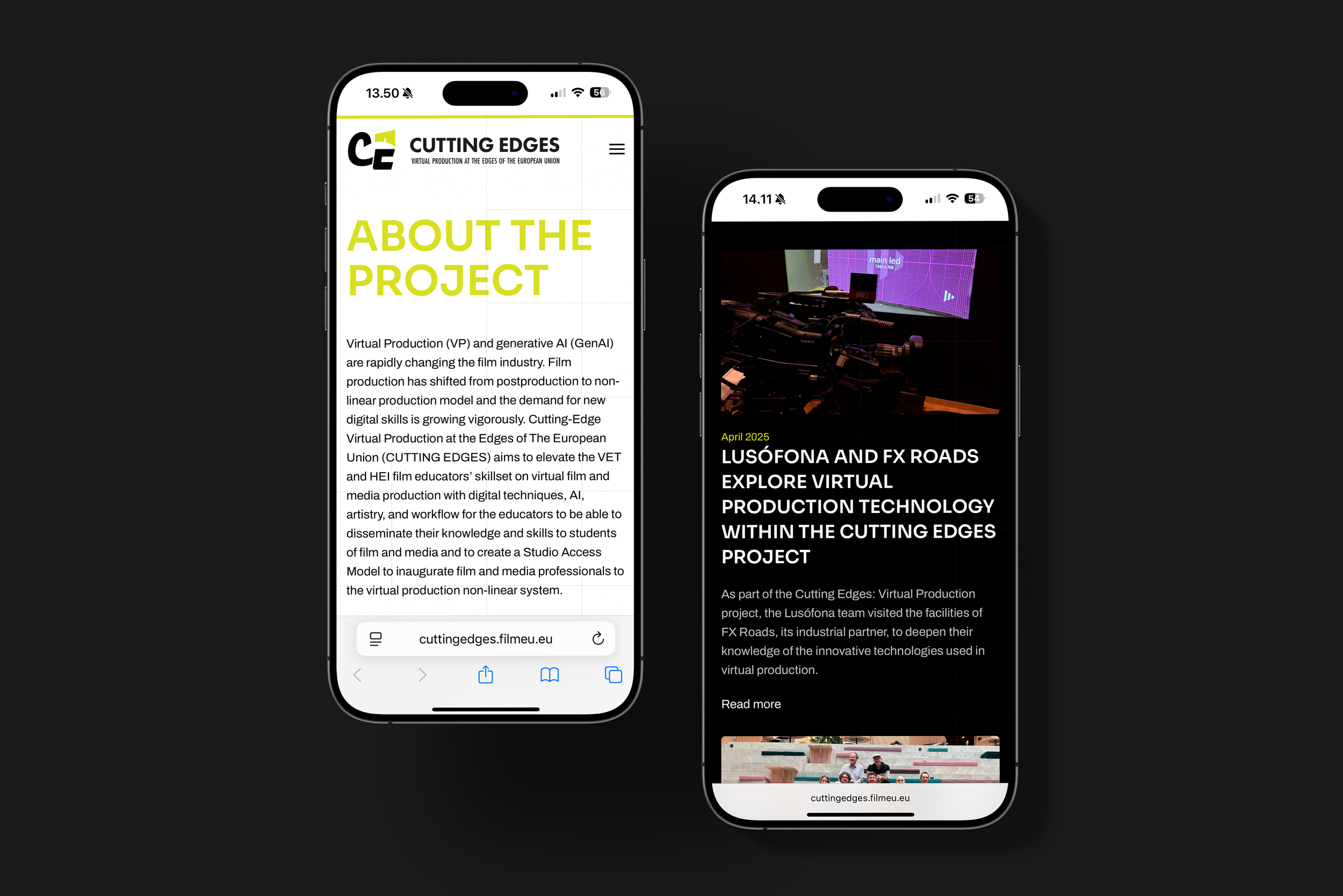 Cutting Edges -hankkeen visuaalisen identiteetin lähtökohtana oli kuvata elokuva-alan murrosta, jossa perinteinen luova työ yhdistyy yhä vahvemmin digitaalisiin työkaluihin ja uusiin teknologioihin.